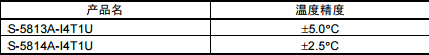 ? 溫度精度高 S-5813A系列:±5.0°C(-30°C ~ +100°C) S-5814A系列:±2.5°C(-30°C ~ +100°C)