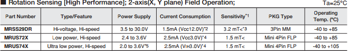 旋轉(zhuǎn)感應(yīng)[高性能]; 2軸(X,Y平面)